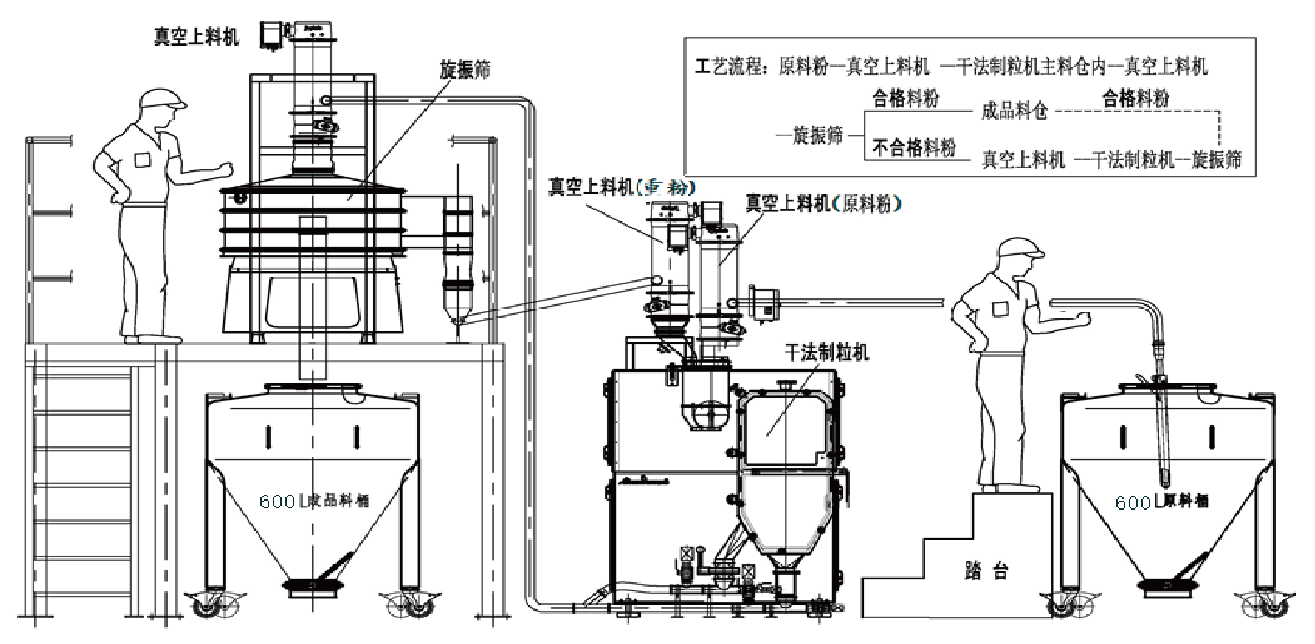 真空密閉傳輸系統(tǒng)、干法制粒、物料篩分、回粉上料