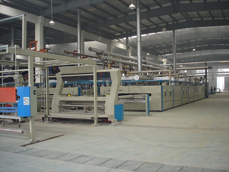 | 工藝流程:平幅進(jìn)布 → 緊布架 → 電動(dòng)吸邊器 → 涂層頭 → 上針 → 熱風(fēng)拉幅烘干 → 脫針(脫鋏) → 冷卻 → 平幅擺式落布 |